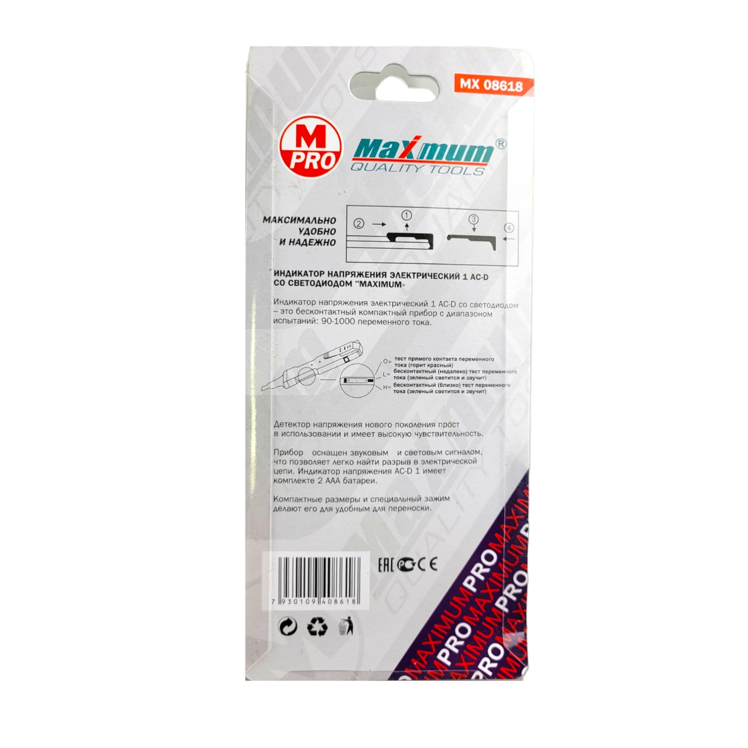 Отвертка-индикатор напряжения 1 AC-D от "Maximum Quality Tools" со светодиодным и звуковым оповещением имеет диапазон испытаний: 90-1000 переменного тока. Прибор нового поколения имеет высокую чувствительность. Индикатор напряжения AC-D имеет в комплекте 2 батарейки 1,5B. Лёгкий и компактный прибор оснащен клипсой для переноски.