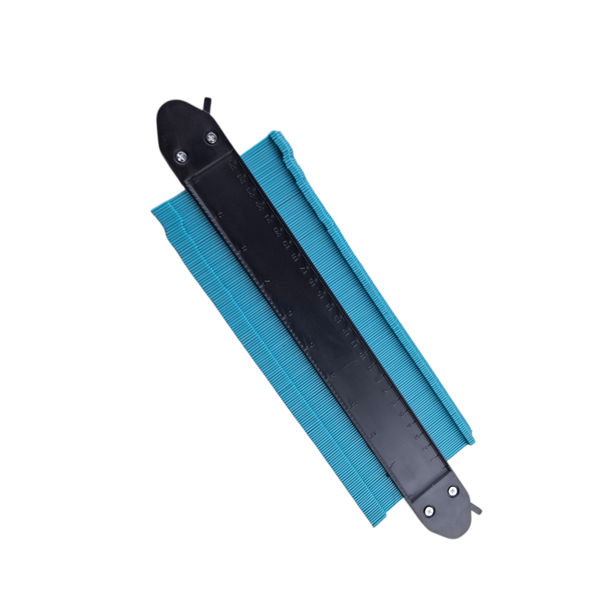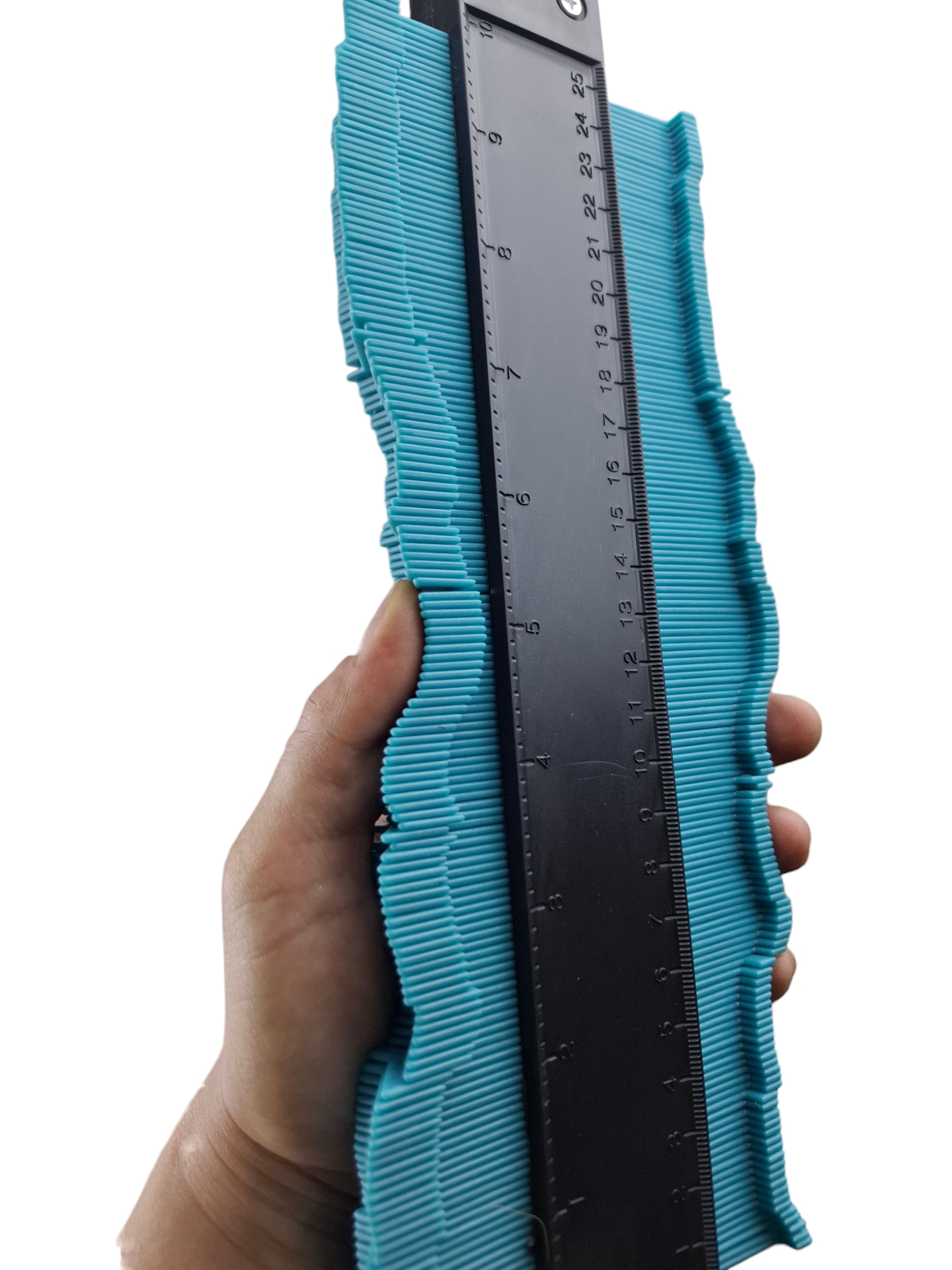Копировальный шаблон с общими габаритами 258×100×20 мм позволяет точно и быстро скопировать контур любой сложной формы и перенести его на нужную поверхность. Прибор имеет простую конструкцию, состоит из линейки 25,5 см. внутрь которой вставлены тонкие подвижные наборные элементы. Также с помощью этого шаблона легко копируются и переносятся очертания любых фактурных, выпуклых, вогнутых и рельефных поверхностей.