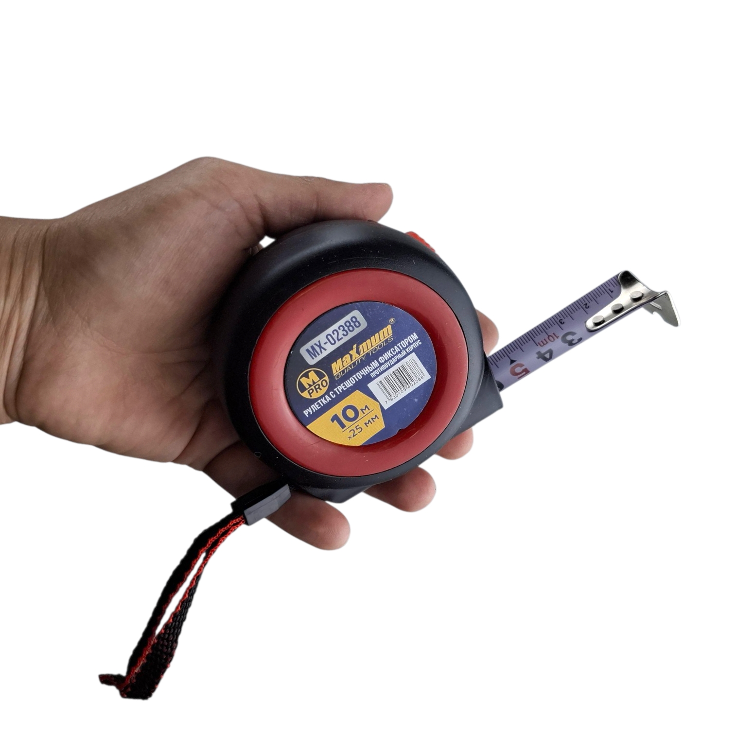 Строительная рулетка с трещоткой 10 метров от «Maximum» — это надежный инструмент для точных замеров.