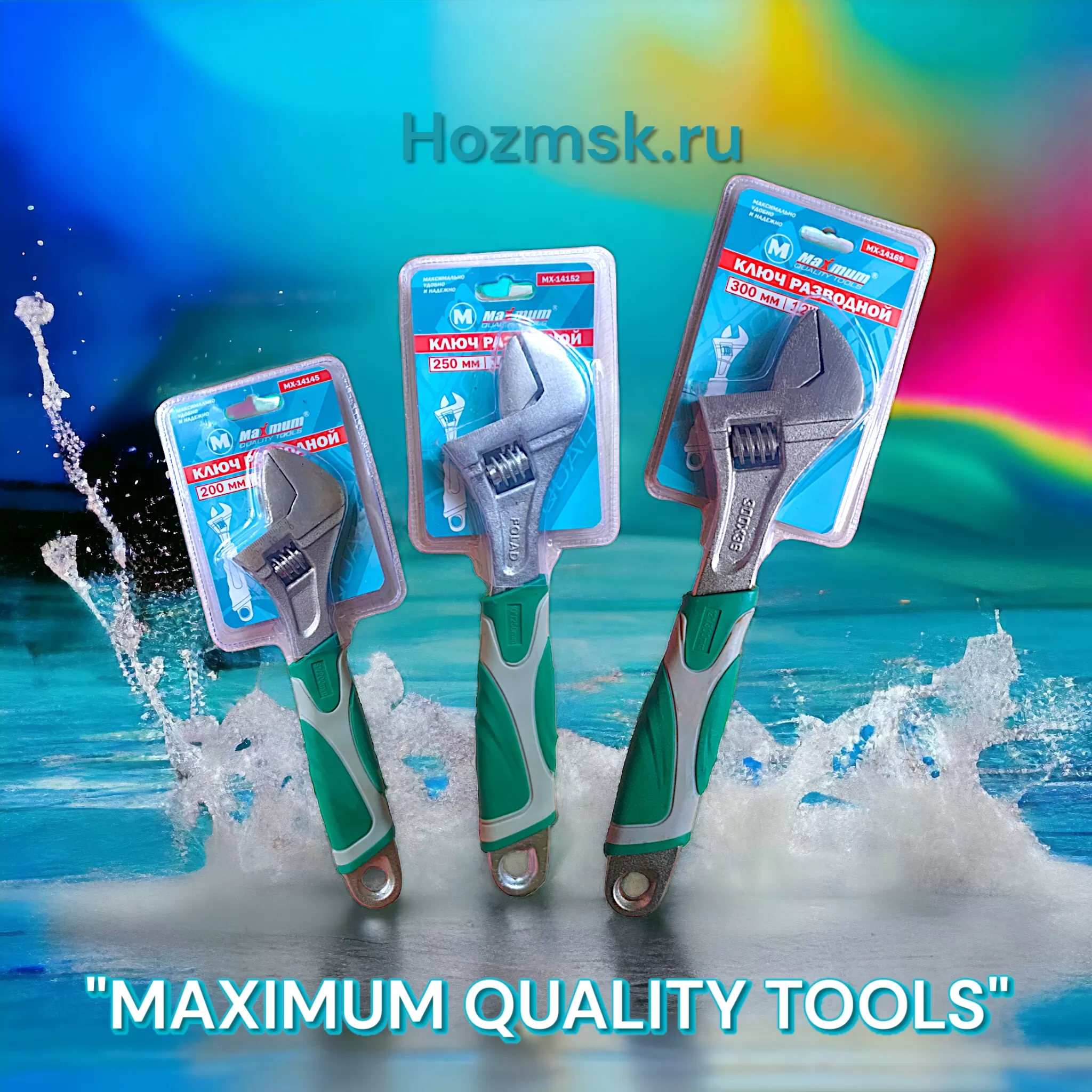 Ключ разводной 200 мм с двухкомпонентной рукояткой,тонкие губки,фосфатирован,МХ5577-8,MAXIMUМ (2857)