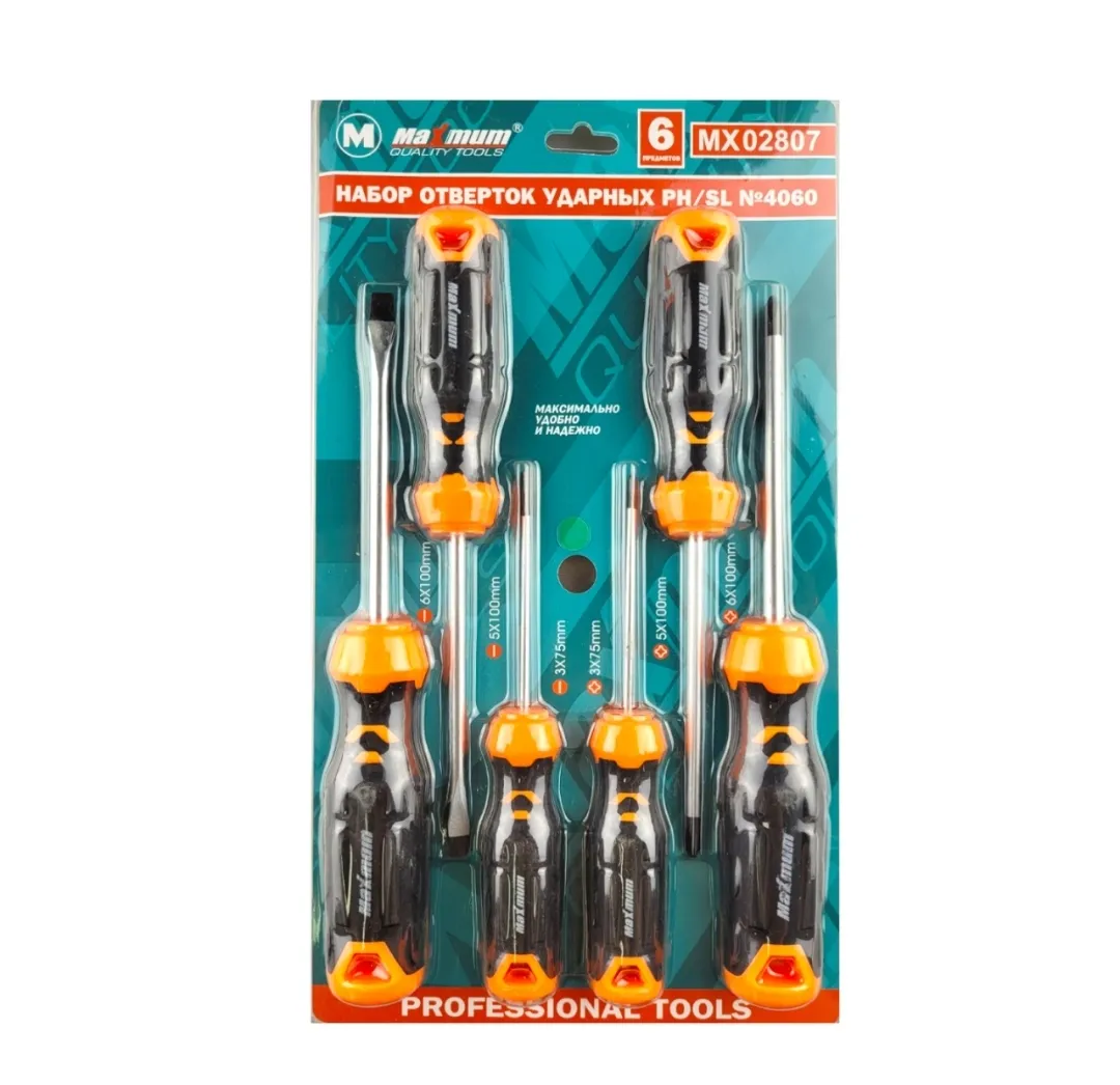 Набор отверток с двухкомпонентной рукояткой от «Maximum Quality Tools» N 4060 подходит для проведения слесарных работ с крепежными соединениями, имеющими крестовой или прямой шлицы.