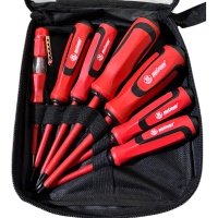 Для удобного хранения набор диэлектрических отверток поставляется в утекстильном числе на молнии.