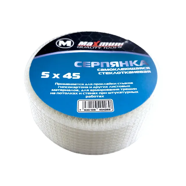 Лента-серпянка 45 метров шириной 50 мм выполнена из стеклоткани с клеевой стороной. Благодаря сетчатой структуре материала исключается возможность появления воздушных зазоров. Сетка хорошо приклеивается к основанию и впоследствии хорошо держится. В течение всего периода эксплуатации материал не выделяет в окружающую среду вредных веществ поэтому его можно использовать в любых типах помещений.