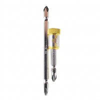 Две торсионные биты работают на скручивание, поэтому насадка отлично подойдет для закручивания в твёрдые материалы. Торсион сохраняет шлицы и бита служит в таких условиях гораздо дольше обычной жёсткой.