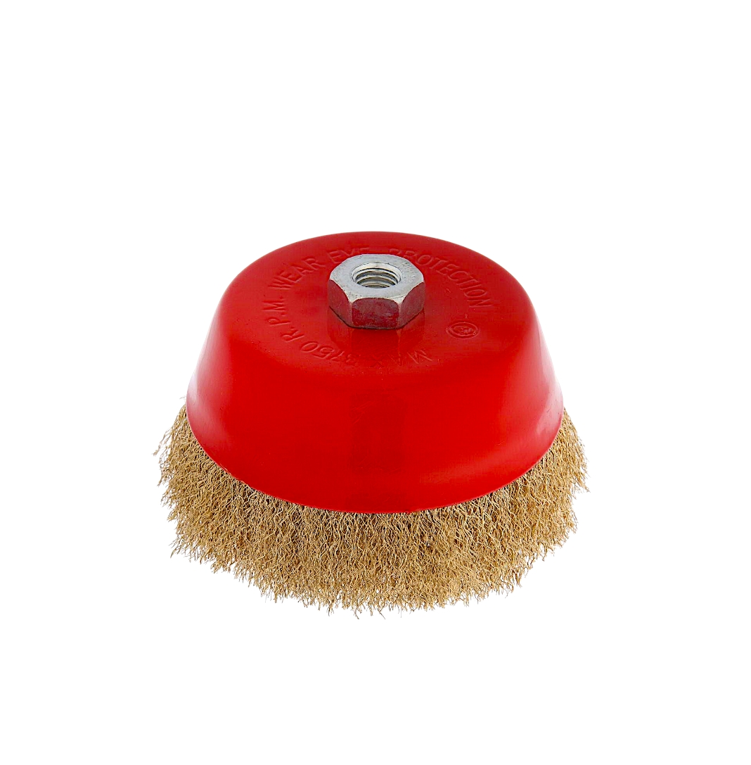 Чашеобразные щетки с волнистой проволокой предназначены для работ с металлом и деревом.