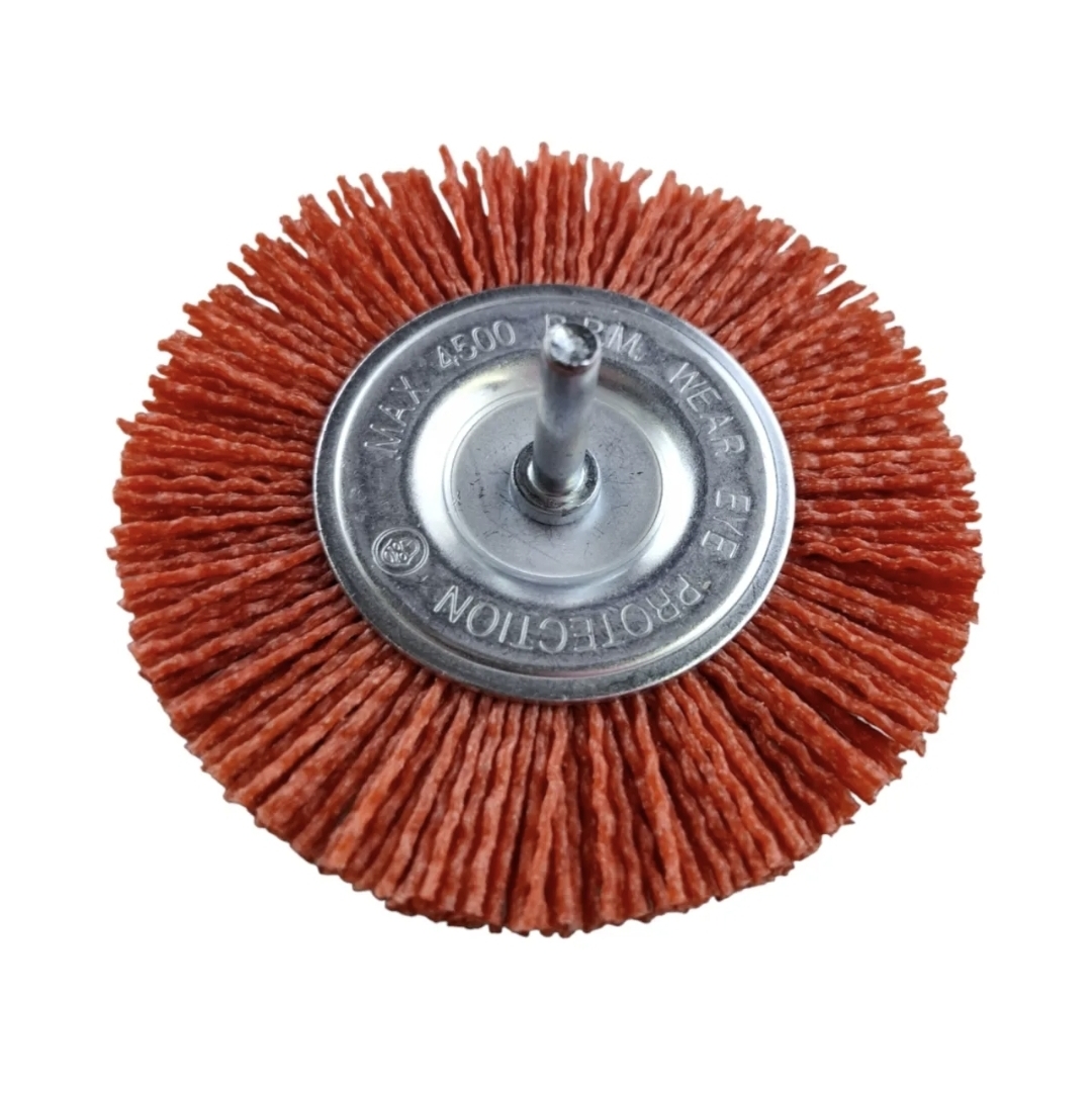 3. Полировка и сатинирование: Чистая нейлоновая щетка без абразива придает металлу (особенно цветному — алюминию, латуни, меди) красивый матовый блеск.