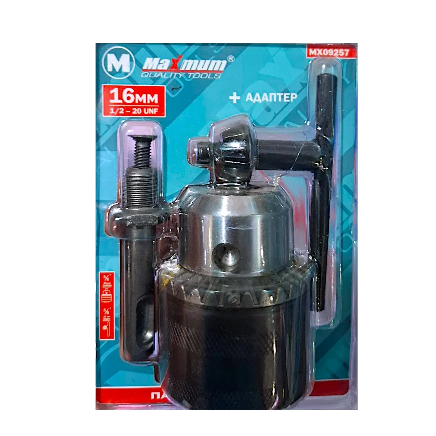 Патрон ключевой 16 мм с переходником SDS-plus имеет в комплекте т-образный ключ и предназначен для дрелей, шуруповертов и сверлильных станков. Патрон 16 мм служит для зажима сверла, венчика для миксера, шлифовальных абразивных дисков и других вспомогательных элементов в строительстве и ремонте. Ключ для патрона 1/2-20 UNF + адаптер надежно фиксируют насадки, замедляя износ венцов элемента зажима при высоких нагрузках.